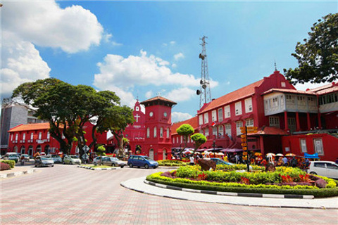 15世纪,因为马六甲苏丹拒绝了葡萄牙人的不平等贸易要求,葡萄牙人以武力占领了马六甲,并修建了A'Famosa城堡用来防卫苏丹军队的进攻。其中的圣地亚哥古城门是进入葡萄牙A'Famosa古堡四大通道的其中一条。但是后来葡萄牙又被荷兰击败,马六甲易主,城堡也跟着被重建及扩大,并且在城门上加了“VOC”(荷兰东印度公司)的标志。随后英国人入侵,坚固厚实的城堡差一点令英国军队全军覆灭,所以在战争胜利之后,英国人决定要毁掉这座城堡。后来因为多方干涉,城堡虽然被毁,但是圣地亚哥古城门还保留了下来。这座坚固的城门如今依然孤独的屹立着,在它身上,再一次见证了马六甲多舛的历史。 荷兰红屋是荷兰殖民时期所遗留在马六甲的红色建筑物,建于1650年,是东南亚最古老的荷兰建筑。红屋曾是18世纪时的荷兰总督官邸和荷兰人行政中心,后来易主为英国人的行政中心,如今则是马六甲博物馆,展览马六甲王朝、荷兰、英国和葡萄牙的历史文物。虽然这个建筑的砖墙、窗口和门的样式都有荷兰风格,但是作为昔日总督卧室的顶楼,却充满了中国神话的装饰。
